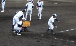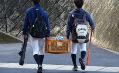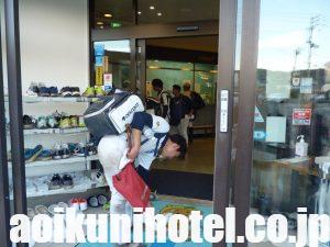 球場から、ランニングで戻ってきた学生さん!